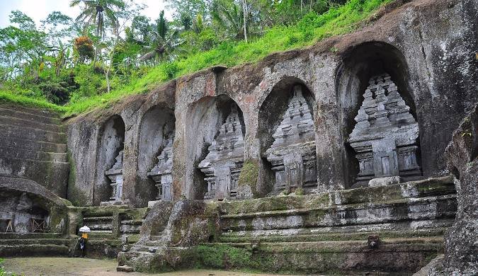 Gunung Kawi is an architectural marvel, a 11th-century temple complex carved into the sheer cliff faces of a lush valley in Gianyar Regency. This ancient site comprises a series of rock-cut candi (shrines), thought to be dedicated to the royal family of the Udayana Dynasty, including several queens. The monument features ten intricately hewn structures, surrounded by terraced rice fields and a serene river, offering a glimpse into Bali’s historical and royal past. The peaceful ambiance and detailed craftsmanship make it a compelling destination for history enthusiasts and travelers alike.